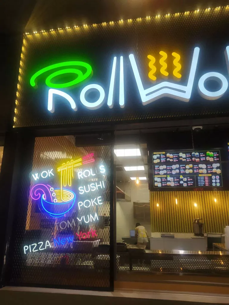 Разработка светящейся интерьерной вывески суши-бара «Roll Wok Club» в Боре